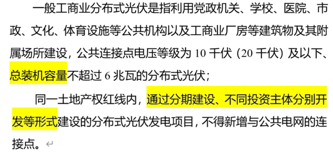 新管理辦法明確為:某公共連接點(diǎn)下的總?cè)萘?。這樣以來,大項(xiàng)目就很難拆分成多個(gè)6MW以下的項(xiàng)目實(shí)施。